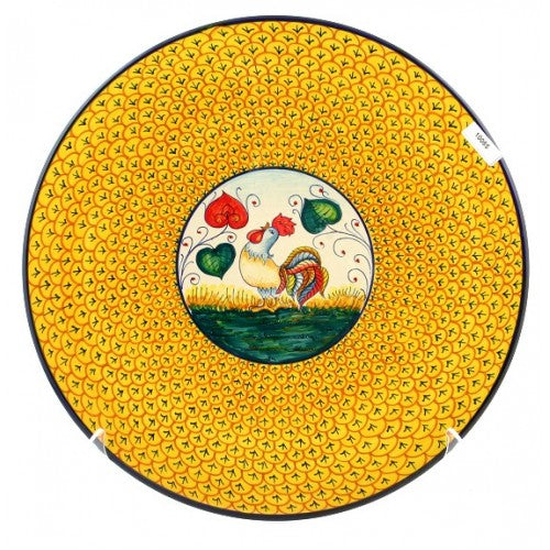 “带有向日葵田图案的丰收公鸡陶瓷盘”
