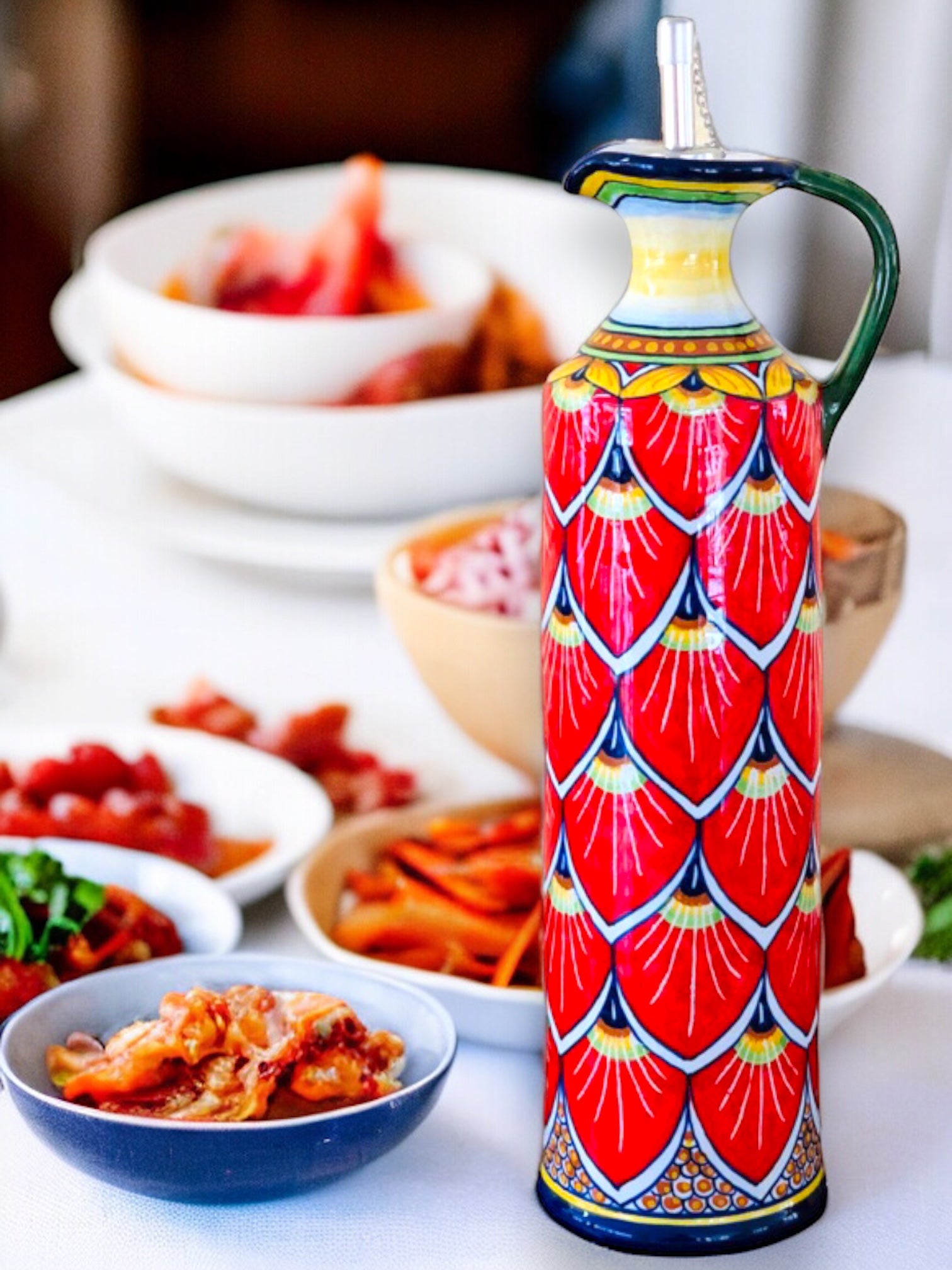 这款瓶子的纤细外形和实用的壶嘴使其不仅是一件装饰品,而且还是日常使用的功能性物品。无论是用来将橄榄油淋在沙拉上,还是简单地为厨房增添一点意大利风情,这款产品都一定会成为人们谈论的焦点。